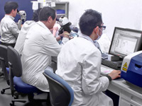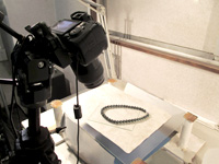 商品の石を検査し、写真撮影をします