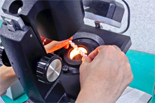 真珠の表面状態を拡大して検査する顕微鏡を用いた方法や、表面・内部状態を確認する光透過検査、非破壊でまき圧を測定する超音波検査をはじめとする多岐に渡る検査を経て、真珠の状態を詳細に確認していきます。