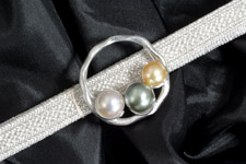 白蝶貝を母貝として、オーストラリア、インドネシア等が生産地です。大粒で通常10mm以上のものが多く、南洋真珠ともいいます。